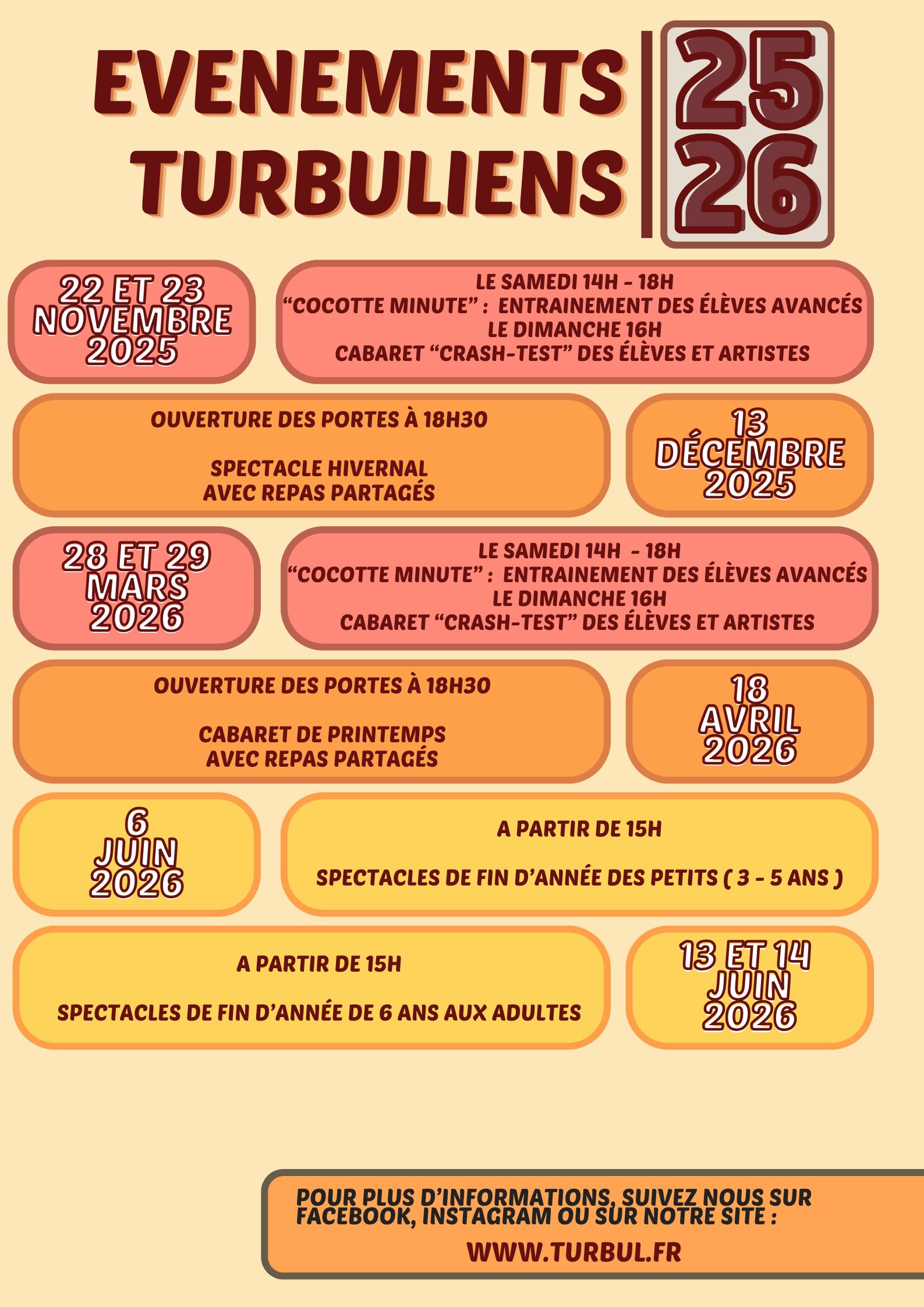 Nous sommes heureux·ses de vous présenter tout nos évènements de la saison 2025-2026. Nous ferons des rappels quelques semaines avant chaque date.